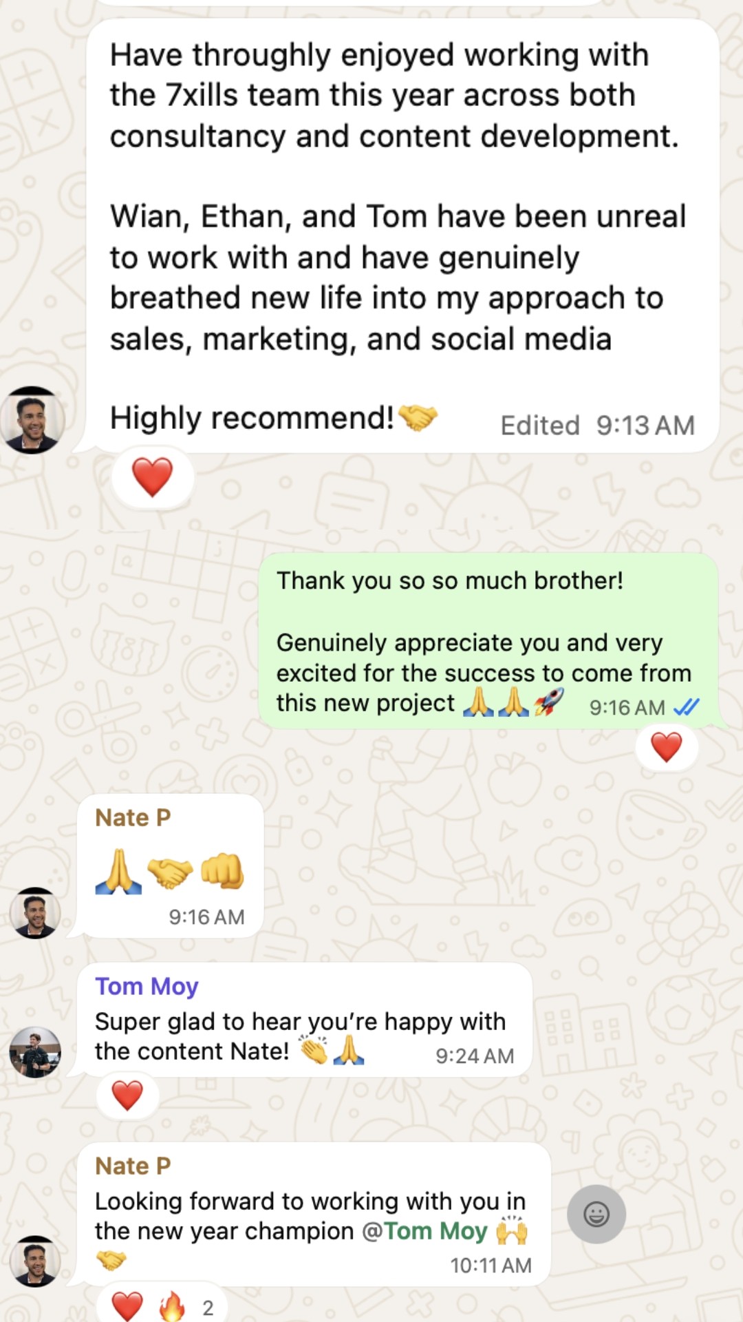 "Love your work buddy, couldn't be happier, we will get to 'Agency Of The Year' with you under us 7xills. Thanks again."